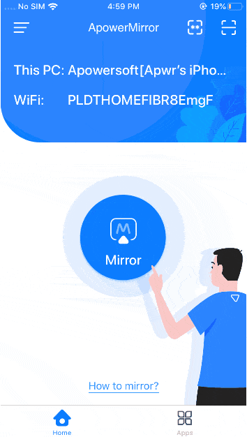 1. หลังจากที่ติดตั้ง ApowerMirror ลงบน iPhone และ คอมพิวเตอร์แล้ว ให้เราเชื่อมต่อ iPhone และคอมพิวเตอร์บนเครือข่าย WiFi เดียวกัน