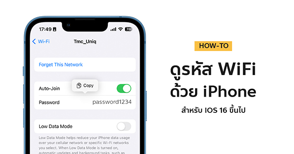 อย่างไรก็ตาม หากคุณใช้ iPhone ที่เป็น iOS 16 ขึ้นไปอยู่ ปัญหานี้สามารถแก้ไขได้ เพราะเราสามารถดูรหัสผ่าน WiFi ที่เชื่อมต่ออยู่ได้จากใน iPhone ได้เลย แต่ทั้งนี้ WiFi ที่ดูรหัสได้จะต้องเป็น WiFi ที่เราเคยเชื่อมต่อไว้แล้วเท่านั้น ไม่สามารถเอาไปดูรหัส WiFi ส่วนตัวของคนอื่นที่เราไม่เคยเชื่อมต่อได้ มีขั้นตอนอย่างไรไปดูกันเลยครับ
