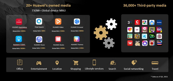 - HUAWEI Ads แพลตฟอร์มนำเสนอโซลูชันโฆษณาบนสมาร์ทดีไวซ์ในอีโคซิสเต็มของหัวเว่ย สำหรับแบรนด์และนักพัฒนาแอปพลิเคชัน เปิดโอกาสในการสร้างรายได้ผ่านฐานผู้ใช้งานอุปกรณ์ของหัวเว่ยอย่างครอบคลุมมากยิ่งขึ้น