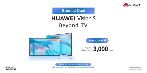 เตรียมพบกับ HUAWEI nova 9, HUAWEI WATCH GT 3 Series และ HUAWEI Vision S ที่เตรียมเข้ามาวางจำหน่ายในประเทศไทยเร็วๆ นี้ นอกจากนี้พิเศษสุดสำหรับใครที่สนใจ HUAWEI Vision S สามารถลงทะเบียนเพื่อรับคูปองส่วนลดสูงสุด 3,000 บาท[10] ได้ก่อนใครผ่านทางเว็บไซต์ HUAWEI Store และร้านค้าอย่างเป็นทางการของหัวเว่ยบนแพลตฟอร์มอีคอมเมิร์ซ ตั้งแต่วันที่ 28 ตุลาคม 2564 ถึง 30 พฤศจิกายน 2564 และสามารถติดตามข่าวสารอัปเดตก่อนใครได้ทางเฟซบุ๊กแฟนเพจ HUAWEI Mobile TH