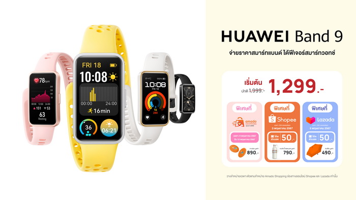 HUAWEI Band 9 จับมือ 3 แพลตฟอร์มออนไลน์ Amado Shopping, Lazadaและ Shopee ให้คุณเข้าถึงฟีเจอร์สมาร์ทวอทช์ด้วยราคาสมาร์ทแบนด์
