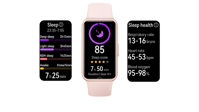 HUAWEI Band 9 มาพร้อม HUAWEI TruSleep™ 4.0 นำเสนอความสามารถที่ครอบคลุมเกี่ยวกับติดตามการนอน เพื่อช่วยให้ผู้ใช้ได้รับภาพรวมของสถานะการนอนหลับที่สมบูรณ์ยิ่งขึ้น รวมถึงฟีเจอร์ Sleep Breathing Awareness[3] และเมื่อทำงานร่วมกับ HUAWEI TruSeen™ 5.5 และ HUAWEI TruSleep™ 4.0 พร้อมด้วยเซ็นเซอร์ PPG ประสิทธิภาพสูง จะสามารถติดตามอัตราการเต้นของหัวใจและออกซิเจนในเลือดในชั่วข้ามคืน โดยจะคัดกรองการหยุดชะงักของการหายใจขณะนอนหลับ โดยให้ผลลัพธ์ในระดับปกติ ต่ำ ปานกลาง และสูง พร้อมทั้งการวิเคราและข้อเสนอแนะในการปรับปรุง ช่วยเหลือผู้ใช้ในการจัดการสุขภาพการนอนหลับของตน และระบุความเสี่ยงได้ล่วงหน้า