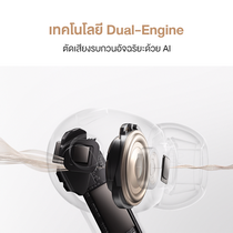 โดดเด่นด้วย เทคโนโลยี Dual-Engine ตัดเสียงรบกวนอัจฉริยะด้วย AI ที่ทำงานร่วมกับ MIMO AI (การแบ่งช่องสัญญาณพร้อมกันด้วย AI) ในการประมวลผลเสียงแบบเรียลไทม์ ช่วยให้ระบบ ANC ปรับตัวตามสภาพแวดล้อมได้อย่างแม่นยำ พร้อมประสิทธิภาพการตัดเสียงรบกวนที่ดียิ่งขึ้น และรองรับการตัดเสียงรบกวนขณะโทรได้ถึง 100dB รวมถึงตัดเสียงลมได้ถึง 10m/s เพื่อการสนทนาที่คมชัดในทุกสถานการณ์