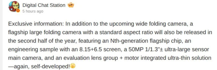 ล่าสุดมีข้อมูลหลุดใหม่จากแหล่งข่าว Digital Chat Station ที่เผยรายละเอียดเบื้องต้นของ HUAWEI Mate X8 ออกมาแล้ว โดยระบุว่าอุปกรณ์รุ่นนี้จะมาพร้อมหน้าจอด้านนอกขนาด 6.5 นิ้ว และหน้าจอพับด้านในขนาด 8.15 นิ้ว ซึ่งถือว่าใหญ่ขึ้นเล็กน้อยเมื่อเทียบกับที่ HUAWEI ใช้ใน HUAWEI Mate X7