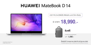 - HUAWEI MateBook D14 11th Gen Intel® Core™ i3 (8GB+256GB) สี Sliver ราคา 18,990 บาท