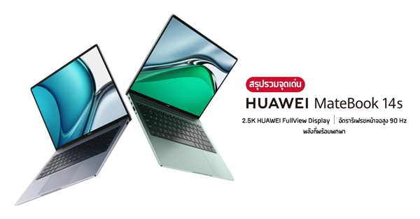 สำหรับ HUAWEI MateBook 14s เรียกได้ว่าเป็นแล็ปท็อปที่มีคุณสมบัติครบเครื่อง ตอบโจทย์การใช้งานทุกไลฟ์สไตล์ โดยเปิดราคาจำหน่ายในประเทศไทยแล้ววันนี้ ในราคาเริ่มต้นที่ 40,990 บาท มีให้เลือกทั้งหมด 2 สี ได้แก่ Space Gray และ Spruce Green พร้อมโปรโมชันพิเศษสำหรับผู้ที่สั่งจองระหว่างวันที่ 28 ตุลาคม 2564 - 12 พฤศจิกายน 2564 รับฟรีหูฟังไร้สายตัวท็อป HUAWEI FreeBuds Pro มูลค่า 5,499 บาท สามารถสั่งซื้อสินค้าได้ที่ HUAWEI Online Store, HUAWEI Experience Store และร้านค้าตัวแทนจำหน่ายทั่วประเทศ