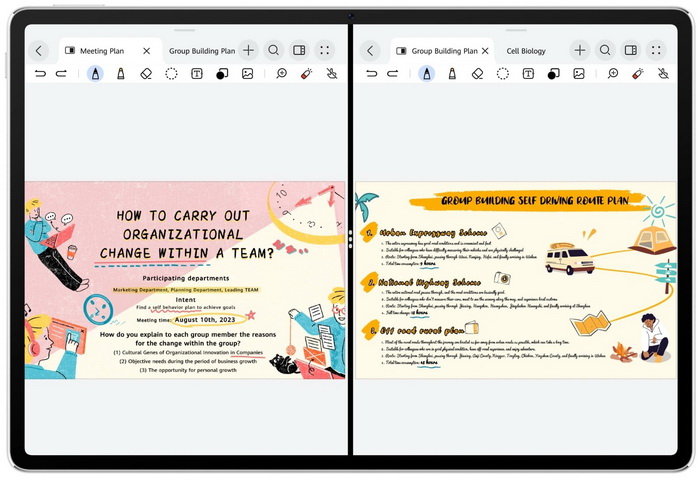 HUAWEI Notes ได้รับการอัปเกรดเพื่อเปลี่ยนการจดบันทึกให้สนุกและมีประสิทธิภาพยิ่งขึ้น เพียงใช้งานร่วมกับ HUAWEI M-Pencil Pro จะสามารถควบคุมการจดบันทึกได้รวดเร็วทุกคาบเล็กเชอร์ ไม่ว่าจะแตะสองครั้งเพื่อเปลี่ยนปากกาสลับกับยางลบ หรือบีบด้ามปากกา เพื่อเรียกเมนูวงกลม เพื่อสลับเปลี่ยนหัวแปรง สีสัน หรือรูปทรงต่างๆ ซึ่งมีหัวแปรงใหม่ 3 แบบ ประกอบด้วย พู่กัน Calligraphy, ดินสอ 2B และปากกามาร์กเกอร์ ด้านหน้าจอ Ultra-Clear PaperMatte Display พร้อมเทคโนโลยีสลักผิวจอภาพแบบนาโนยังมอบผิวสัมผัสราวกระดาษเมื่อเขียนลงบนแท็บเล็ต ช่วยให้การจดเล็กเชอร์ สเก็ตช์ไอเดีย หรือทำมายด์แมปเป็นไปอย่างเป็นธรรมชาติเสมือนเขียนบนสมุดหรือกระดาษจริง โดยมีฟังก์ชัน AI Handwriting Enhancement (รองรับภาษาอังกฤษและจีน) ของ HUAWEI Notes ยังช่วยปรับลายมือให้เป็นระเบียบ