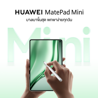 HUAWEI MatePad Mini เปิดให้พรีออเดอร์แล้ววันนี้ ในราคาพียง 18,990 บาท รับทันที สิทธิพิเศษและของสมนาคุณ รวมมูลค่าสูงสุด 22,130 บาท เมื่อซื้อสินค้าระหว่างวันที่ 25 เมษายน 2569 ถึง 30 เมษายน 2569 ได้แก่ HUAWEI M-Pencil 3rd Generation มูลค่า 4,490 บาท, เคส HUAWEI MatePad Mini Folio สีเขียว มูลค่า 1,990 บาท, HUAWEI SuperCharge 66W Adapter มูลค่า 1,690 บาท พร้อมแอปพลิเคชันที่ติดตั้งมาให้ใช้งานฟรี ได้แก่ WPS Office 3.0 มูลค่า 3,990 บาท, HUAWEI Notes มูลค่า 1,990 บาท และ GoPaint App มูลค่า 1,990 บาท นอกจากนี้ยังได้รับบริการ Warranty & Services มูลค่า 3,990 บาท ซึ่งครอบคลุมการเปลี่ยนแบตเตอรี่ฟรี 1 ครั้ง ภายใน 3 ปี และบริการ Deep Cleaning สำหรับหน้าจอ PaperMatte จำนวน 2 ครั้งต่อปี (แนะนำให้เคลมสิทธิ์ภายใน 30 วันนับจากวันที่ซื้อ และสามารถเก็บสิทธิ์ไว้ใช้บริการ Deep Cleaning ได้ภายในระยะเวลา 1 ปีแรกเท่านั้น) และสำหรับลูกค้าที่ต้องการอัปเกรด ยังมีโปรโมชันเก่าแลกใหม่ รับส่วนลดเพิ่มอีก 2,000 บาท จากราคาประเมิน สามารถสั่งจองได้ผ่านหน้าร้าน HUAWEI Experience Store ร้านค้าตัวแทนจำหน่ายที่ร่วมรายการ และช่องทางออนไลน์อย่าง HUAWEI Store, Lazada, Shopee และ TikTok Shop