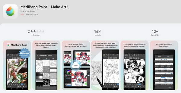- MediBang Paint แอปฯ ยอดฮิตสำหรับสายวาดมังงะและแฟนอาร์ต จัดเต็มกับแปรงวาดภาพและโทนสีกว่า 1,000 แบบ พร้อมอำนวยความสะดวกให้สามารถอัปโหลดชิ้นงานเก็บไว้ใน Cloud ได้ เป็นอีกหนึ่ง