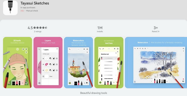 - Tayasui Sketches แอปฯ สเก็ตช์ภาพที่ทำได้มากกว่าสเก็ตช์ มีหัวพู่กันหลากหลายแบบ จะวาดสีน้ำ หรือทำภาพประกอบบทความก็เนรมิตได้อย่างอิสระ เสริมด้วยฟังก์ชันล้ำๆ มากมายแถมยังให้ผู้ใช้งานตั้งค่าอินเทอร์เฟซได้อีกด้วย