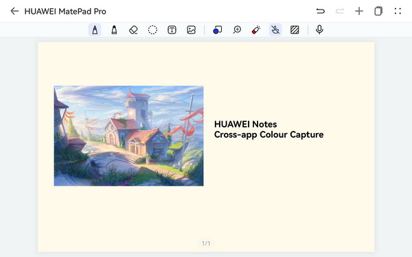 - HUAWEI Notes แอปฯ จดโน้ตที่พัฒนาโดยหัวเว่ยเองและติดตั้งมาแล้วแบบพร้อมใช้งาน ให้ผู้ใช้ HUAWEI MatePad Pro 11-inch สามารถจดบันทึกได้ทั้งการพิมพ์ เขียน รวมถึงสามารถตัดแปะรูปภาพ ออกแบบเลคเชอร์หรือบันทึกการประชุมที่สวยงามและเป็นระเบียบได้ง่ายๆ แถมยังรองรับฟีเจอร์ Cross-app Colour Capture สามารถดูดสีจากรูปภาพอื่นๆ หรือการดูดสีข้ามแอปพลิเคชัน เนรมิตทุกสีสันบนโลกให้มาปรากฏบนแท็บเล็ตได้อย่างใจนึก
