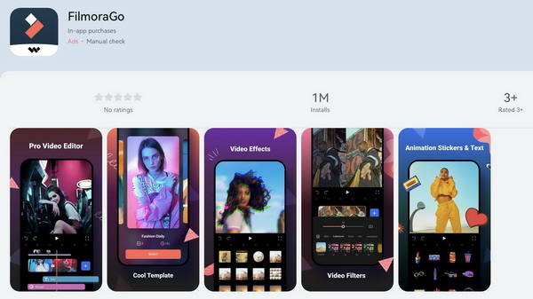- FilmoraGo HD แอปฯ ตัดต่อสุดฮิตของบรรดาครีเอเตอร์ เพราะทำอะไรได้เยอะไม่แพ้การตัดต่อบนคอมพิวเตอร์ แถมยังมีเทมเพลต เอฟเฟกต์ และเมนูตัดต่อให้เลือกใช้มากมาย รับรองว่าได้คลิปไฟนอลที่ดูเป็นมืออาชีพ จบได้ในแอปฯ เดียว การันตีด้วยยอดการดาวน์โหลดกว่าหนึ่งล้านครั้ง