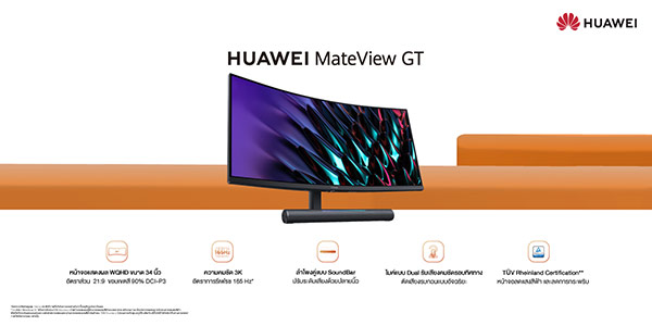 เปิดตัว HUAWEI MateView GT ราคาไทย 17,990 บาท จอเกมมิ่งโค้งพิเศษ ใหญ่เต็มตา 34 นิ้ว คมชัด 3K พร้อม Refresh Rate 165Hz และระบบเสียงรอบทิศทางแบบ 360 องศา