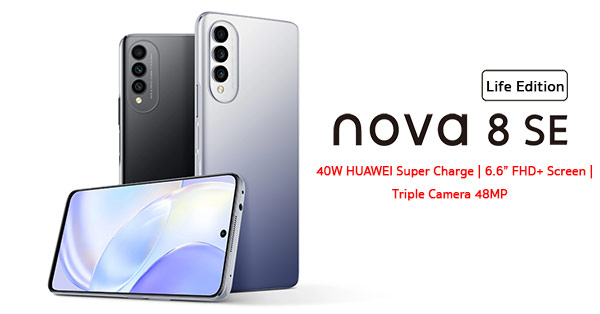 เปิดตัว HUAWEI nova 8 SE Life Edition น้องใหม่กับจอ FHD+ 6.6 นิ้ว มีแบตชาร์จไว 40W และกล้องหลัง 3 ตัว 48MP