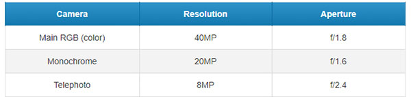 สำหรับกล้องตัวที่ 3 ที่เพิ่มเข้ามานั้นก็คือเลนส์ Telephoto ความละเอียด 8 ล้านพิกเซลซึ่งมีประโยชน์โดยตรงต่อฟังก์ชัน 5x Lossless Hybrid Zoom ซึ่งทำงานด้วยการขยายภาพทางลึกที่ได้จากกล้องเลนส์ Telephoto แล้วนำข้อมูลไปประมวลผลร่วมกับภาพที่ได้จากกล้องอีก 2 ตัวที่เหลือที่มีความละเอียดสูงกว่าเพื่อเติมเต็มรายละเอียดและสีสัน