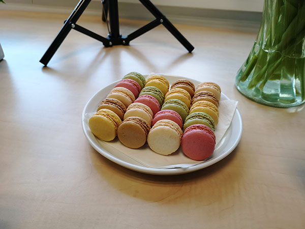 จากภาพจะเห็นได้ว่า Huawei P20 Pro ยังคงรักษาความคมชัดได้อยู่จนถึงระดับการซูมที่ 5 เท่า โดยสังเกตได้ว่ารายละเอียดบนผิวขนมมาการองแต่ละชิ้นยังคมชัดแทบไม่ต่างจากระดับ 2x อย่างไรก็ดีเมื่อลองซูมเข้าไปที่ระดับ 10x ซึ่งอยู่นอกเหนือขีดจำกัดของระบบ Lossless Hybrid Zoom ความคมชัดจะลดลงอย่างเห็นได้ชัด