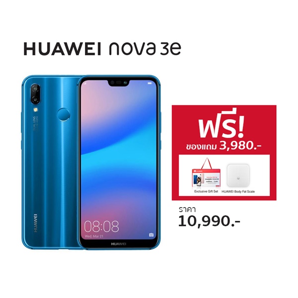 หลังจากที่เปิดตัวในไทย พร้อมเปิดพรีออเดอร์ในประเทศไทยไปเมื่อช่วงต้นเดือนพฤษภาคมที่ผ่านมา ล่าสุดก็เริ่มวางจำหน่ายในงาน TME 2018 อย่างเป็นทางการแล้ว สำหรับ Huawei nova 3e สมาร์ทโฟนน้องใหม่ในตระกูล nova ในราคา 10,990 บาท ที่มาพร้อมกับความโดดเด่นด้านกล้องหน้าเซลฟี่ความละเอียดสูงถึง 24 ล้านพิกเซล โดยโปรโมชันภายในงาน TME 2018 นั้น จะได้รับฟรีของแถมมูลค่ากว่า 3,980 บาท ประกอบไปด้วย Exclusive Gift Set และเครื่องชั่งน้ำหนักอัจฉริยะ Huawei Body Fat Scale ที่สามารถวัดมวลไขมันได้ในตัว พร้อมรับสิทธิ์ผ่อนชำระค่าเครื่องแบบ 0% และรับเครดิตเงินคืนจากสถาบันการเงินที่ร่วมรายการ