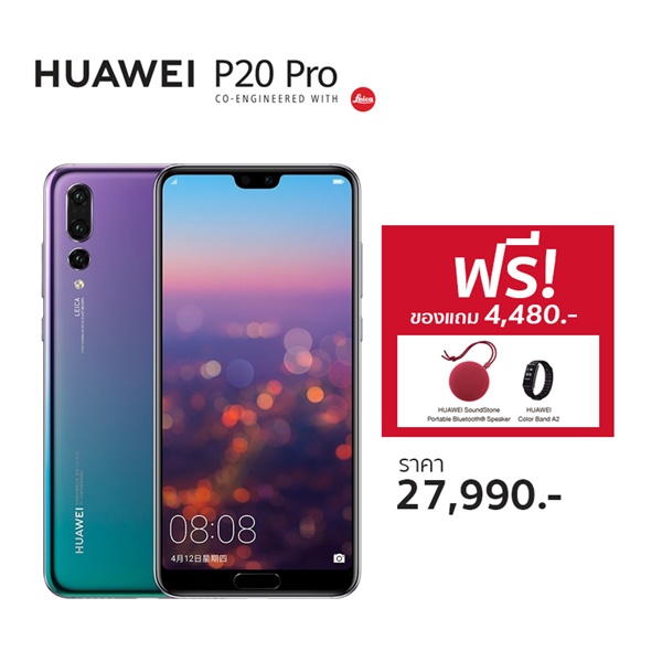 สำหรับผู้ที่ซื้อ Huawei P20 Pro ในราคา 27,990 บาท จะได้รับของแถมมูลค่ากว่า 4,480 บาท ประกอบไปด้วย ลำโพงบลูทูธไร้สาย Huawei SoundStone Portable Speaker และ นาฬิกาอัจฉริยะ Huawei Color Band A2 พร้อมรับสิทธิ์ผ่อนชำระค่าเครื่องแบบ 0% พร้อมรับเครดิตเงินคืนจากสถานบันการเงินที่ร่วมรายการ