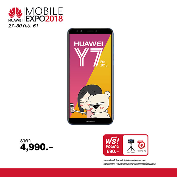 HUAWEI Y9 ว่าคุ้มแล้ว ยังคุ้มได้อีกกับ HUAWEI Y7 Pro (2018) สมาร์ทโฟนน้องเล็กที่มากับกล้องคู่ด้านหลังและไฟแฟลชเซลฟี สเปกครบเครื่องทุกการใช้งาน ในราคาขำๆ เพียง 4,990 บาท พร้อมรับของแถมเป็นขาตั้ง Tripod มูลค่า 690 บาท ใครกำลังมองหามือถือเครื่องใหม่ พลาดไม่ได้ครับ