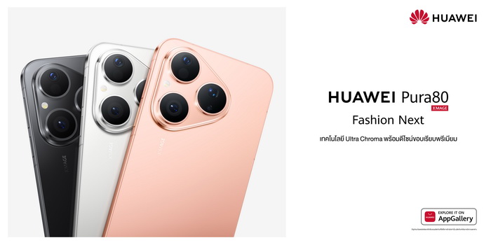 เสริมไลน์อัป เปิดตัว HUAWEI Pura 80 สมาร์ทโฟนดีไซน์ล้ำ กล้อง Ultra Chroma XMAGE สีสันสมจริง พร้อมประสบการณ์ AI อัจฉริยะ