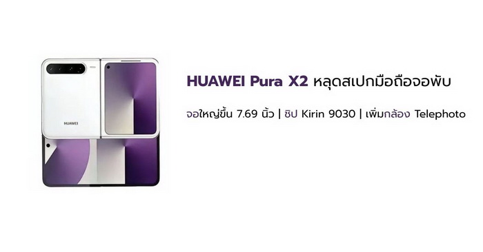หลุดสเปก Huawei Pura X2 เผยจอใหญ่ขึ้น ใช้ชิป Kirin 9030 และเพิ่มกล้อง Telephoto