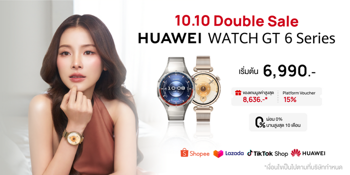 อย่าพลาด! ช้อป HUAWEI WATCH GT 6 Series ในราคาสุดคุ้มเริ่มเพียง 6,990 บาท พร้อมรับสิทธิพิเศษมากมายเฉพาะในช่วงแคมเปญ 10.10 นี้เท่านั้น