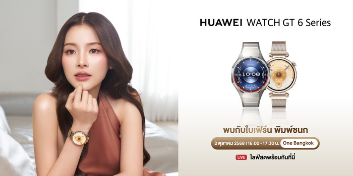 ใกล้เข้ามาแล้วกับการเปิดตัว HUAWEI WATCH GT 6 Series สมาร์ทวอทช์แฟชันรุ่นล่าสุด ที่โดดเด่นด้วยคอนเซ็ปต์ “Shaped by the Wind” ผสานดีไซน์อันล้ำสมัยเข้ากับสมรรถนะขั้นสูง ตอบโจทย์ทั้งสายแฟชัน สุขภาพ และกีฬาอย่างลงตัว โดย หัวเว่ย คอนซูมเมอร์ บิสสิเนส กรุ๊ป (ประเทศไทย) ได้สร้างเซอร์ไพร์สด้วยการดึง “ใบเฟิร์น-พิมพ์ชนก ลือวิเศษไพบูลย์” นักแสดงแถวหน้าของเมืองไทย มาร่วมสะท้อนภาพลักษณ์สมาร์ทวอทช์แห่งยุคที่เปี่ยมด้วยสไตล์และพลังในการก้าวข้ามทุกขีดจำกัด ชูความเป็นคนยุคใหม่ที่กล้าท้าทายตัวเอง มีสไตล์โดดเด่นไม่เหมือนใคร และใส่ใจในการดูแลตนเอง สอดคล้องกับภาพสะท้อนของ HUAWEI WATCH GT 6 Series ที่เป็นทั้ง “แฟชันสเตทเมนต์” และ “ผู้ช่วยดูแลสุขภาพและการใช้ชีวิต” ได้อย่างสมบูรณ์แบบ