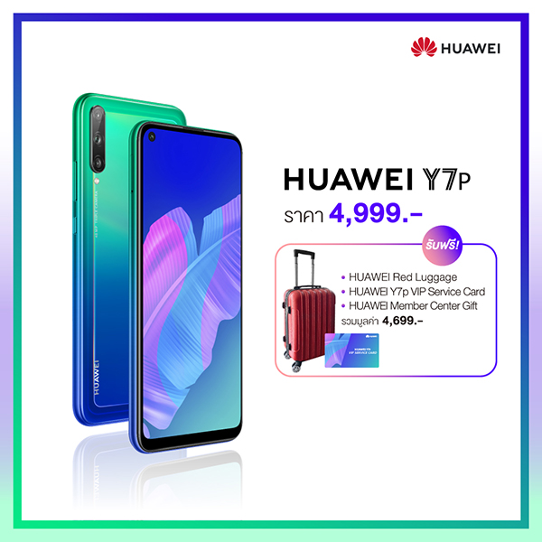 เปิดตัว HUAWEI Y7p สมาร์ทโฟน 3 กล้องพลัง AI 48 ล้านพิกเซล พร้อม RAM 4 GB และชิป Kirin 710F ในราคาคุ้มๆ เพียง 4,999 บาท จองวันนี้รับของแถมเพียบ!