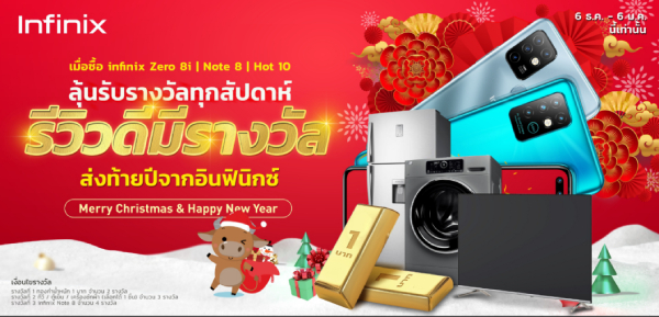 เมื่อวันที่ 6 ธันวาคม 2563 ที่ผ่าน ‘อินฟินิกซ์’ แบรนด์สมาร์ทโฟนสำหรับคนรุ่นใหม่เปิดขาย ‘Infinix ZERO 8i’ สมาร์ทโฟนรุ่นเรือธงของทางค่ายเป็นครั้งแรกในไทยซึ่งได้รับกระแสตอบรับเป็นอย่างดีตั้งแต่วันแรก ขายหมดสต๊อกภายใน 24 ชั่วโมง ซึ่งสำหรับลูกค้าที่สนใจสามารถติดตามโปรโมชั่นและพรีออเดอร์ ZERO 8i ได้ทที่ Shopee เท่านั้น ยิ่งไปกว่านั้นทางอินฟินิกซ์ได้จัดกิจกรรมสุดพิเศษตอนรับปีใหม่ 2564 ตอบแทนลูกค้าอินฟินิกซ์กับกิจกรรม ‘รีวิวดีมีรางวัล’ พิเศษสำหรับผู้ที่ซื้อสมาร์ทโฟนกับ Infinix ในระหว่างวันที่ 6 ธันวาคม 2563 - 6 มกราคม 2564 ในรุ่น Infinix ZERO 8i, Note8 และ Hot10 รุ่นใดก็ได้ แล้วทำการรีวิวการใช้งานสมาร์โฟนในสไตล์ตัวเองทั้งในรูปแบบของรูปภาพ, วิดีโอหรือบทความก็ได้ทาง Social Media ของท่านพร้อมติด Hashtag #รีวิวดีมีรางวัล และ #InfinixFanFest มีสิทธิ์ลุ้นรับรางวัลพิเศษมากมายอาทิ ทองคำ, Smart TV, ตู้เย็น, เครื่องซักผ้าและโทรศัพท์มือถือ Infinix note8 อีกทั้งโชคชั้นที่2กับรางวัลพิเศษที่จะแจกทุกสัปดาห์ สัปดาห์ละ 5 รางวัลให้สำหรับผู้เข้าร่วมกิจกรรมรีวิว ของรางวัลมูลค่ารวมทั้งสิ้นกว่า 1 แสนบาท