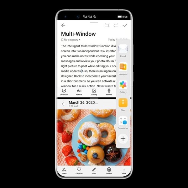 ปกติแล้วเราจะคุ้นเคยกับแบ่งหน้าจอแบบครึ่งต่อครึ่ง เพื่อเล่นสองแอปพลิเคชันพร้อมกัน โดยใน HUAWEI P40 Series 5G ได้มีการนำฟีเจอร์ดังกล่าวไปพัฒนาต่อยอดอีกขั้นจนกลายมาเป็นฟีเจอร์ใหม่ที่เรียกว่า Windows-Multiplier ที่นอกจากช่วยให้ผู้ใช้สามารถเปิดแอปพลิเคชันแบบแบ่งหน้าจอได้อย่างลื่นไหลด้วยพลังของชิปเซ็ตตัวใหม่ Kirin 990 5G