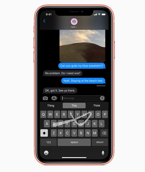 หนึ่งในฟีเจอร์ที่น่าสนใจบน iOS 13 ได้แก่ QuickPath Typing คีย์บอร์ดแบบใหม่ที่รองรับการพิมพ์แบบปาดนิ้วจากตัวอักษรหนึ่ง ไปอีกตัวอักษรหนึ่ง (Swipe Typing) ซึ่งไม่จำเป็นต้องจิ้มทีละตัวอักษร และช่วยให้พิมพ์ข้อความต่างๆ ได้รวดเร็วยิ่งขึ้น รวมถึงสามารถพิมพ์ข้อความด้วยมือข้างเดียวได้สะดวกมากขึ้น เรียกได้ว่าผู้ใช้ iPhone ไม่จำเป็นต้องดาวน์โหลดแอปพลิเคชันจาก Third-Party เพื่อพิมพ์แบบ Swipe Typing อีกต่อไปแล้ว