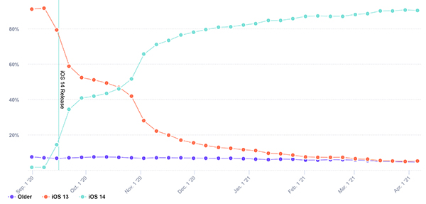 ʶԵÔà¼Â ¼ÙéãªéÍØ»¡Ã³ìÃкº iOS ¡ÇèÒ 90% ä´éÍѻവà»ç¹ iOS 14 áÅéÇ