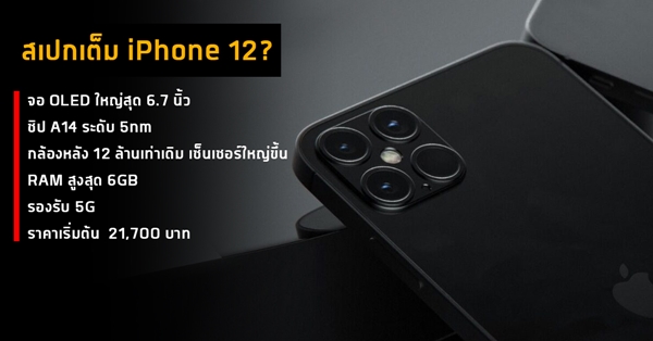 iPhone 12 เผยสเปกล่าสุดครบทุกรุ่น มาพร้อมจอใหญ่สุด 6.7 นิ้ว, กล้อง 12MP เท่ารุ่นเก่า และชิป A14 ระดับ 5nm ในราคาเริ่มราว 21,700 บาท