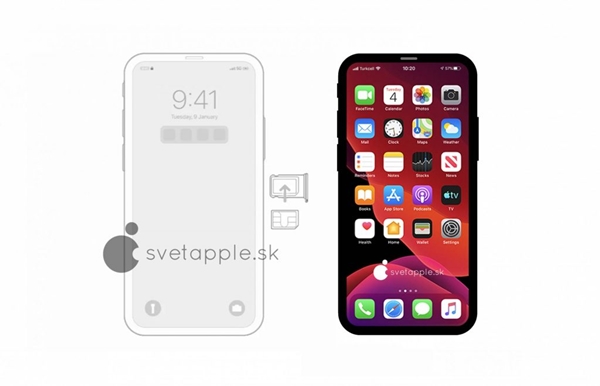 เมื่อไม่นานมานี้ได้มีภาพเรนเดอร์ของ iPhone 12 ถูกเปิดเผยออกมาจาก Svetapple ซึ่งอ้างว่าภาพที่เห็นด้านต้นเป็นภาพดีไซน์ของ iPhone 12 Pro ที่เตรียมเปิดตัวในปีนี้ โดยจุดที่น่าสนใจก็คือ ไอโฟนรุ่นดังกล่าวมาพร้อมกับดีไซน์ใหม่ที่เป็นหน้าจอไร้ขอบอย่างแท้จริง ไม่มีติ่ง ไม่มีรอยบากที่ด้านบนอีกต่อไป โดยชุดกล้อง TrueDepth Camera สำหรับใช้สแกนใบหน้านั้น ถูกปรับขนาดให้เล็กลง พร้อมติดตั้งเอาไว้ที่บริเวณขอบด้านบนทั้งหมด ไม่ว่าจะเป็น Infrared Camera, Flood Illimoator, Ambient Light หรือ Dot Projector