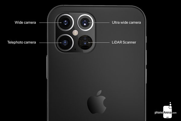 ภาพคอนเซ็ปท์ชุดนี้ถูกเผยแพร่ออกมาจากเว็บไซต์ PhoneArena ซึ่งได้ปั้นภาพเรนเดอร์ของ iPhone 12 Pro 5G โดยอ้างอิงจากข่าวหลุดล่าสุดเท่าที่มีอยู่ในขณะนี้ โดย iPhone 12 Pro 5G จะมาพร้อมกับการอัปเกรดใหม่ด้วยระบบกล้องหลัง 4 ตัว ซึ่งกล้องที่ถูกเพิ่มเข้ามาคือกล้อง LiDAR Scanner ตามการรายงานของแหล่งข่าวอย่าง Choco_bit ซึ่งอ้างว่าเป็นอดีตพนักงงานของ Apple Authorized Service Provider โดยข้อดีของกล้อง LiDAR Scanner จะช่วยให้ iPhone 12 Pro 5G ตรวจจับระยะชัดตื้นได้อย่างแม่นยำ และฉับไวมากยิ่งขึ้น ซึ่งเป็นเทคโนโลยีเดียวกันกับที่ใช้บน iPad Pro รุ่นใหม่ ไปจนถึงรถยนต์ไร้คนขับ ตอบโจทย์การนำไปประยุกต์ใช้กับฟีเจอร์ถ่ายภาพหน้าชัดหลังเบลอ รวมถึงการทำ AR
