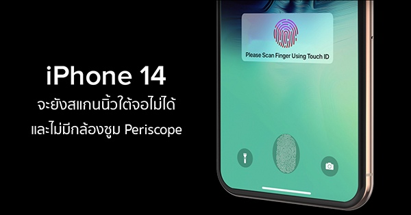 นักวิเคราะห์เผย iPhone 14 จะยังสแกนนิ้วใต้จอไม่ได้ และจะไม่มีเลนส์ซูมแบบ Periscope