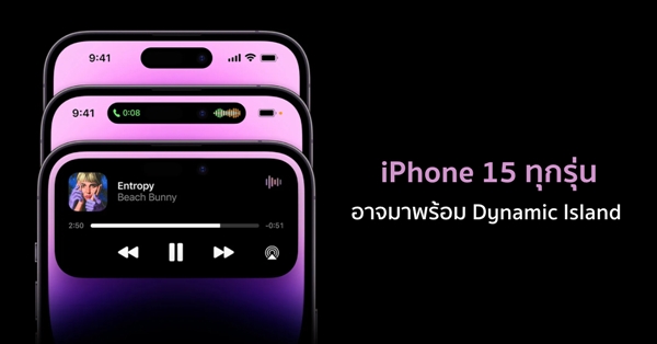 iPhone 15 ทุกรุ่นอาจมาพร้อมรอยบากแบบ Dynamic Island