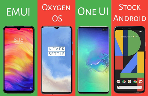 Custom UI หรืออินเทอร์เฟซที่ผู้ผลิตมือถือแต่ละยี่ห้อพัฒนาขึ้นและสวมทับลงไปบนระบบ Android เสมือนเป็น “หน้ากาก” เพื่อให้สมาร์ทโฟนของตัวเองมอบประสบการณ์การใช้งานที่ต่างจากยี่ห้ออื่น ยกตัวอย่างเช่น Samsung ที่ใช้ One UI, Huawei ที่ใช้ EMUI, OPPO ที่ใช้ ColorOS หรือ Xiaomi ที่ใช้ MIUI เป็นต้น และไม่ใช่แค่หน้าตาเท่านั้น บางครั้ง Custom UI ยังมีฟีเจอร์ที่ล้ำหน้ากว่า Android แท้ๆ เช่น One UI ของ Samsung ที่มีโหมดกลางคืนหรือ Night Mode ให้ใช้ก่อนที่ Android แท้ๆ จะอัปเดตเข้ามา เป็นต้น ทำให้สมาร์ทโฟน Android แต่ละยี่ห้อแตกต่างกันอย่างสิ้นเชิง แม้จะเป็น Android เหมือนกันก็ตาม