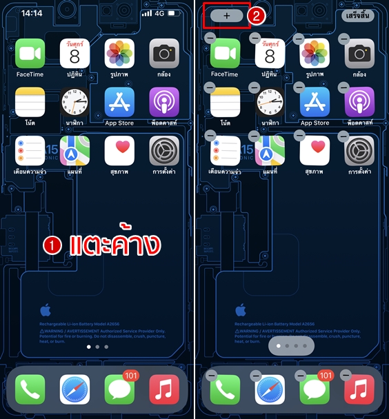 1. กดค้างบนพื้นที่ว่างในหน้าโฮม จนไอคอนแอปสั่น
