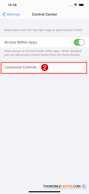 ก่อนอื่นเราต้องทำให้ฟีเจอร์นี้โชว์ขึ้นมาบน Control Center เสียก่อน โดยไปที่ Settings > Control Center > Customize Controls