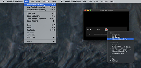 - เปิด QuickTime Player บน iMac ขึ้นมา ไปที่ File เลือก New Movie Recording