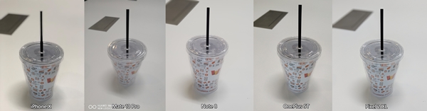 Samsung Galaxy Note 8 : การเบลอขอบวัตถุโปร่งแสงของ note 8 ยังมีความผิดพลาดใกล้เคียง iPhone X สังเกตจากการเบลอของขอบสองข้างของโหลแก้ว อย่างไรก็ดีจะเห็นว่าโดยรวม iPhone X และ Note 8 จะสามารถละลายฉากหลังได้มากกว่ารุ่นอื่นซึ่งอาจจะทำให้เกิดการประมวลผลของซอฟแวร์ผิดพลาดได้ง่ายกว่า