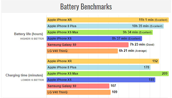 ข้อเท็จจริงดังกล่าวได้รับการยืนยันจากเว็บไซต์ Phone Arena ซึ่งอ้างว่าได้ทำการรีวิว iPhone XR และทดสอบระยะเวลาการใช้งานของแบตเตอรี่ และพบว่า iPhone XR สามารถรองรับการเปิดใช้งานหน้าจอต่อเนื่องได้นานถึง 11 ชั่วโมง ทำลายสถิติเดิมของ iPhone 8 Plus ที่เคยทำไว้ที่ 10 ชั่วโมงครึ่ง และนับเป็น iPhone รุ่นที่แบตอึดที่สุดเท่าที่ทาง Phone Arena เคยทดสอบมา ซึ่งความอึดระดับนี้ iPhone XR จะสามารถรองรับการใช้งานทั่วไปได้นานถึง 2 วันเลยทีเดียว