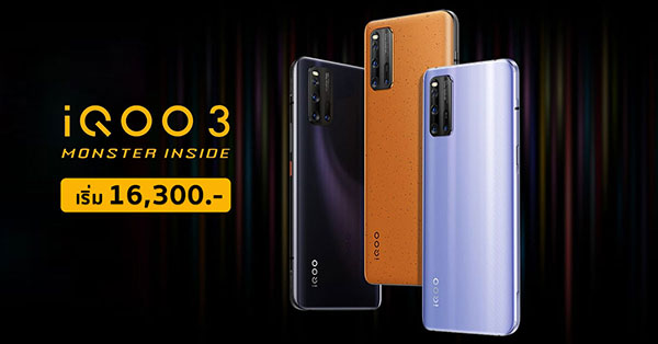 เปิดตัว iQOO 3 5G เรือธงเกมมิ่ง 5G จัดเต็มด้วยชิป Snapdragon 865 จับคู่ RAM 12GB + ROM UFS 3.1 แบตใหญ่ 4440 mAh ชาร์จไว 55W และกล้อง 4 ตัว 48MP ในราคาเริ่มที่ 16,300 บาท
