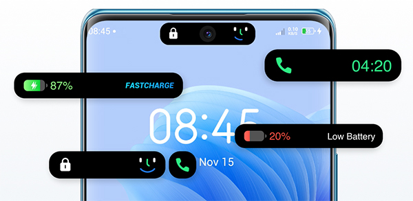 ส่วนกล้องหน้าแบบเจาะรูเป็นกล้องความละเอียดสูงถึง 32MP แต่ทีเด็ดของกล้องตัวนี้คือฟีเจอร์ Dynamic Bar ที่ได้รับแรงบันดาลใจมาจาก Dynamic Island ของ iPhone 15 ช่วยให้ผู้ใช้ดูแจ้งเตือน, ดูสายโทรเข้า, สถานะแบตเตอรี่ และข้อมูลจิปาถะอื่น ๆ ได้อย่างรวดเร็ว แต่ทั้งนี้ต้องอัปเดตซอฟต์แวร์ก่อนจึงจะใช้งาน Dynamic Bar ได้