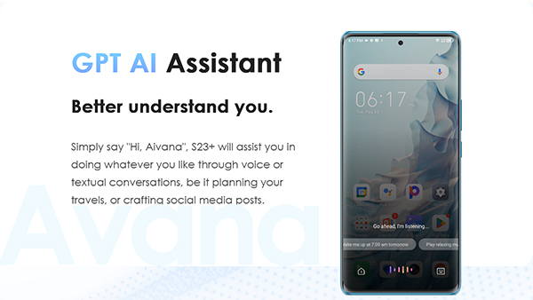 itel S23+ มากับระบบปฏิบัติการ itelOS 13 บนพื้นฐานของ Android 13 โดยมาพร้อมกับ Aivana GPT ผู้ช่วยอัจฉริยะพลัง AI พร้อมด้วยแบตเตอรี 5,000 mAh ที่รองรับระบบชาร์จไว 18W ผ่านพอร์ต USB-C สามารถชาร์จจนเต็ม 100% ได้ในเวลา 2 ชั่วโมง