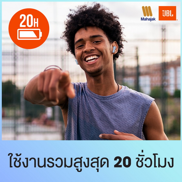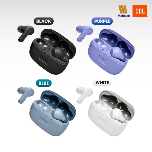 JBL WAVE 200 TWS หูฟังแบบ In-Ear ดีไซน์ใหม่ ใช้งานง่าย น้ำหนักเบา สะดวกในการพกพา หูฟังบลูทูธแบบไร้สาย ขนาดกระทัดรัด น้ำหนักเบาเพียง 47.5 กรัม พกพาง่าย ดีไซน์ใหม่ ให้เสียงชัด คุณภาพเสียง Deep Bass Sound เอกลักษณ์เฉพาะของ JBL สามารถใช้งานนานสูงสุด 20 ชั่วโมง ใช้งานได้ต่อเนื่องสูงสุด 5 ชั่วโมงต่อการชาร์จ 1 ครั้ง และ Case Charging สามารถเก็บแบตเตอรี่ได้ 15 ชั่วโมง พร้อมฟังก์ชั่นการโทรแบบไร้สาย Hands-free calls สามารถสั่งการผ่านระบบ Google Assistant เชื่อมต่อได้เสถียรมากขึ้นด้วย Bluetooth 5.0 ด้วยระบบ Dual Connect สามารถทำงานแยกข้างได้อย่างอิสระ ตัวหูฟังสามารถใช้งานง่ายเพียงแค่สัมผัส แตะค้างเพื่อเรียก Siri, Google Assistant, Bixby แตะ 2 ครั้งเพื่อรับ/วางสาย แตะค้างเพื่อเปิด/ปิดไมค์ระหว่างคุยโทรศัพท์ แตะ 1 ครั้งเพื่อเล่นเพลง/หยุดเพลง แตะ 2 ครั้งเพื่อเล่นเพลงถัดไป แตะ 3 ครั้งเพื่อนเล่นเพลงก่อนหน้า และถ้าสวมใส่เป็น Stereo Mode หูฟังทั้งสองข้างจะใช้คำสั่งเดียวกันกับ Mono Mode สามารถใช้คำสั่งเดิมไม่ว่าจะเป็นข้างซ้ายหรือข้างขวา และยังสามารถเก็บข้างที่ไม่ใช้เพื่อชาร์จแบตในระหว่างใช้งานได้อีกด้วย มีให้เลือก 4 สี ได้แก่ สีดำ, สีขาว, สีฟ้า และสีม่วง