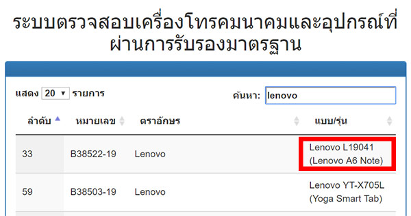 นอกจากนี้รายชื่อของ Lenovo A6 Note ที่มีชื่อรหัส Lenovo L19041 ก็ได้ผ่านการรับรองจากทาง กสทช. แล้วด้วยเช่นกัน ซึ่งถือเป็นการยืนยันว่าจะมีการเข้ามาวางจำหน่ายในประเทศไทยอย่างแน่นอน ซึ่งกำหนดการจะเป็นช่วงใดนั้นก็ต้องมาติดตามกันต่อไปค่ะ