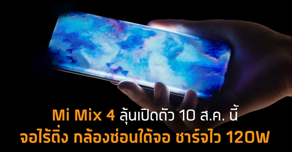 Xiaomi Mi Mix 4 จ่อเปิดตัว 10 ส.ค. นี้ คาดจัดเต็มจอไร้รอยบาก พร้อมกล้องใต้จอ และชาร์จไว 120W