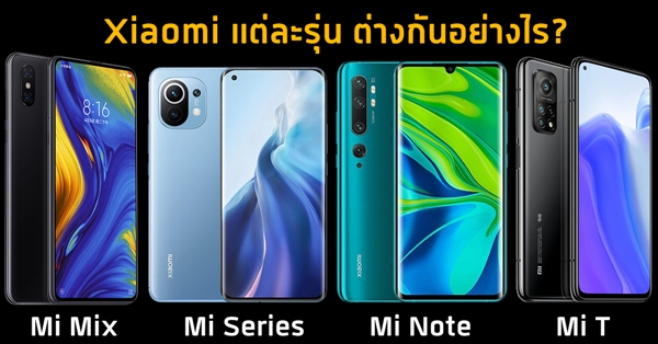 Xiaomi เป็นอีกหนึ่งแบรนด์ที่มีการนำสมาร์ทโฟนซีรีส์ต่างๆ เข้ามาวางจำหน่ายในบ้านเราหลายต่อหลายรุ่น ซึ่งหากนับมือถือที่ใช้ชื่อแบรนด์ Xiaomi ในการวางจำหน่ายภายในประเทศไทย จะมีทั้งหมด 4 ซีรีส์ด้วยกัน ได้แก่ Mi Mix Series, Mi Series, Mi Note Series และ Mi T Series ซึ่งหลายคนอาจจะสงสัยว่าแล้วสมาร์ทโฟนทั้ง 4 ตระกูลนี้มีความแตกต่างกันอย่างไรบ้าง? วันนี้ทีมงานจะมาคลายข้อสงสัยให้กับทุกคนเองครับ